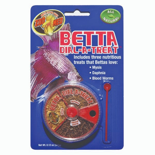 Includes three nutritious treats that Betta and other fish will relish. Dial-A-Treat includes Mysis, Daphnia, Blood Worms.