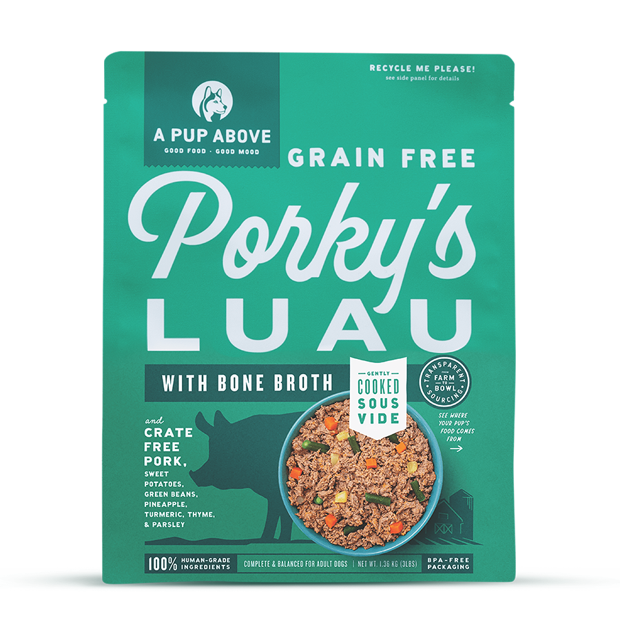 A Pup Above Frozen Porky's Luau 3 LB: Gently Cooked, Sous-Vide Dog Food for Discerning Pups!