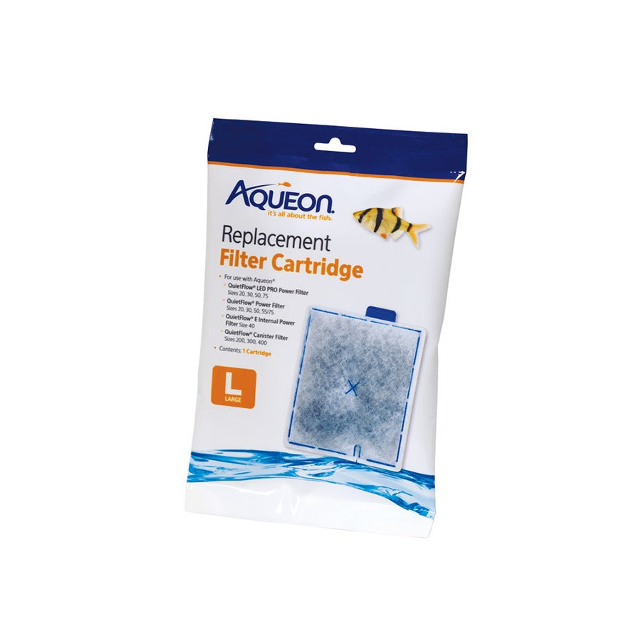 The Aqueon Replacement Filter Cartridge LRG 1 PK is specifically designed to fit a range of Aqueon QuietFlow Filters, including LED PRO Size 20, 30, 50, and 75, Power Filter Size 20, 30, 50, 55/75, E Internal Size 40, and Canister Filter Size 200, 300, and 400.