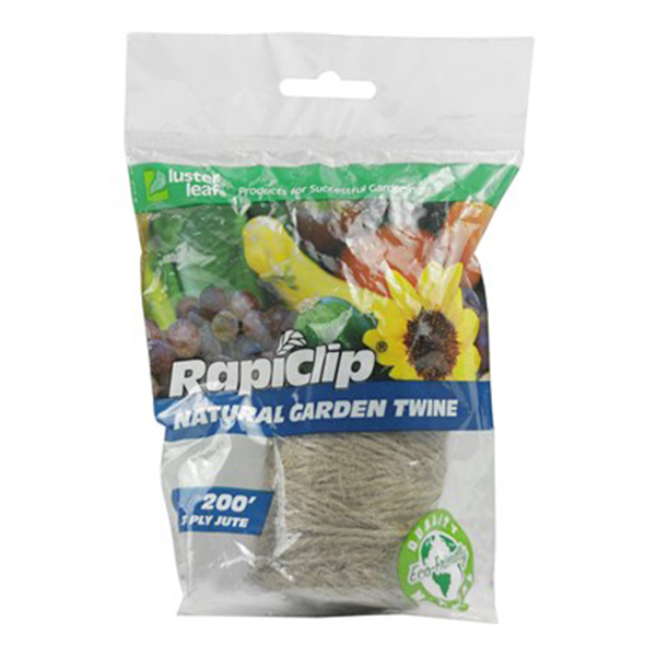 Rapiclip Garden Twine 200 FT is made of soft jute twine. With over 200 feet per roll it is easily cut down to the exact size you need to tie up your garden vegetables. Jute twine is a great alternative to other ties becasue it is 100% bio-degradable. It's softer texture and elasticity will prevent damage and bruising to your plants.